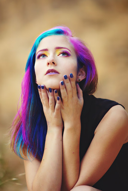 Today I'm sharing a shoot I did about a week or so ago with Ashley! Ive been wanting to shoot a coloured hair girl forever and I was so happy to have her! I mean look at this girl, she has a vivid rainbow of blues and purples in her hair!